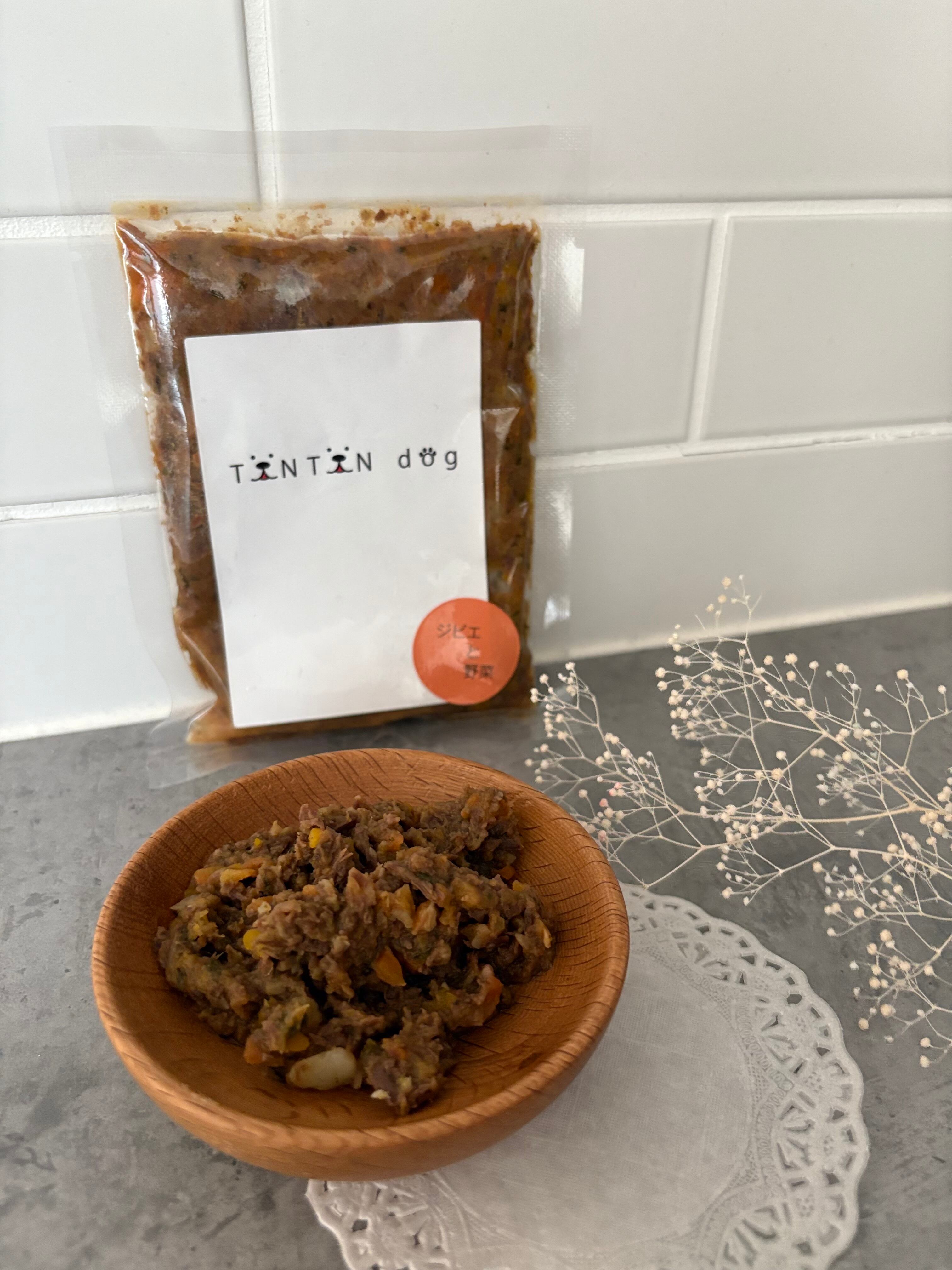 北海道産鹿肉を主成分として、新鮮な野菜をたっぷりと使用した愛犬のための特別なごはんです。ジビエならではの深い味わいと栄養豊富な野菜が絶妙に組み合わさり、愛犬の健康をサポートします。